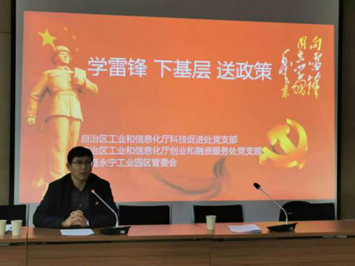 此次活动以“学雷锋、下基层、送政策”为主题,科技促进处、创业与融资服务处党支部的同志们向永宁工业园区的近百家企业传达了中央和自治区关于技术创新和支持企业发展的最新精神,讲解了产业技术揭榜攻关、企业技术中心、新产品鉴定等技术创新政策和最新的融资惠企政策,介绍了自治区企业公共服务平台的功能并现场演示了使用方法。永宁县县长郝春明、永宁园区管委会主任钱冬和近百家企业参加了此次活动,并给予了高度肯定,认为此次学雷锋志愿服务活动很有意义,帮助企业解决了对有关政策理解不深、申报项目流程不清等问题。