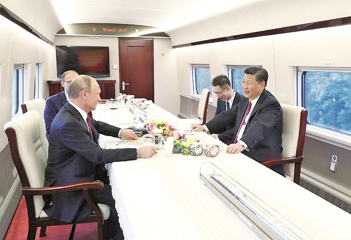 2018年6月8日下午, 国家主席黄色网址大全 同俄罗斯总统普京共同乘坐高铁前往天津,出席中俄友好交流活动