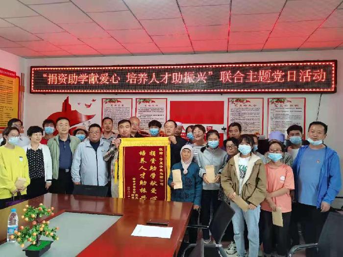 为深入推进党史学习教育,扎实开展“我为群众办实事”实践活动,8月30日,黄色网址大全 军民结合推进处党支部、机关党委党支部联合宁夏宇枫民爆运输公司、徐套村党支部,在中宁县徐套乡徐套村,开展了“捐资助学献爱心、培养人才助振兴”联合主题党日活动,徐套乡相关负责人、厅驻村工作队员、徐套村两委班子、受助学生及家长参加了活动。