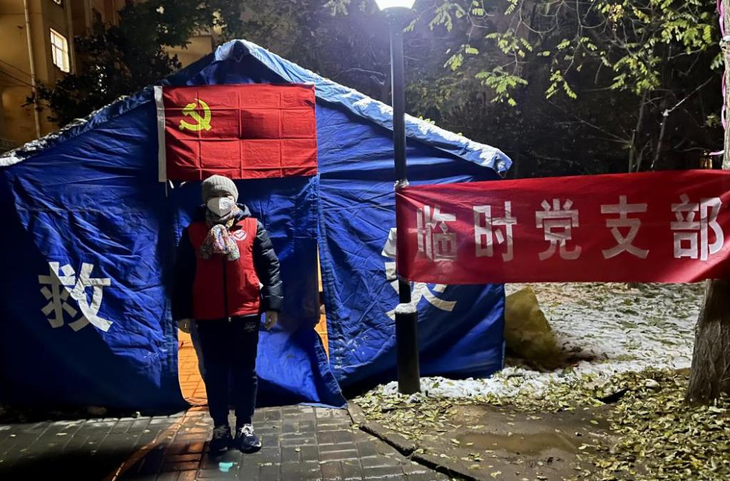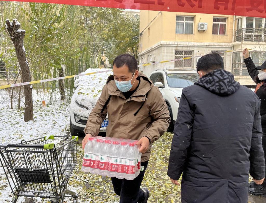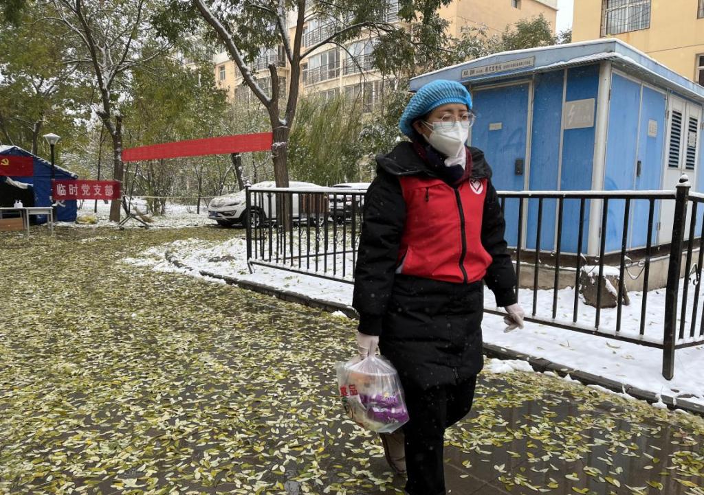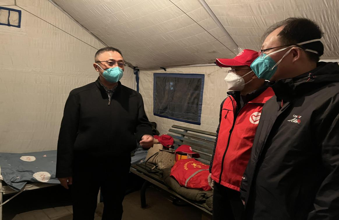 大衣、水果、牛奶以及其它很多慰问品,厅长还亲切地询问我们所在社区抗疫的情况和我们负责站点的居民情况,查看我们的帐篷是否保暖、关心我们的饮食及身体健康状况。叮嘱大家要做好防护,保证自身