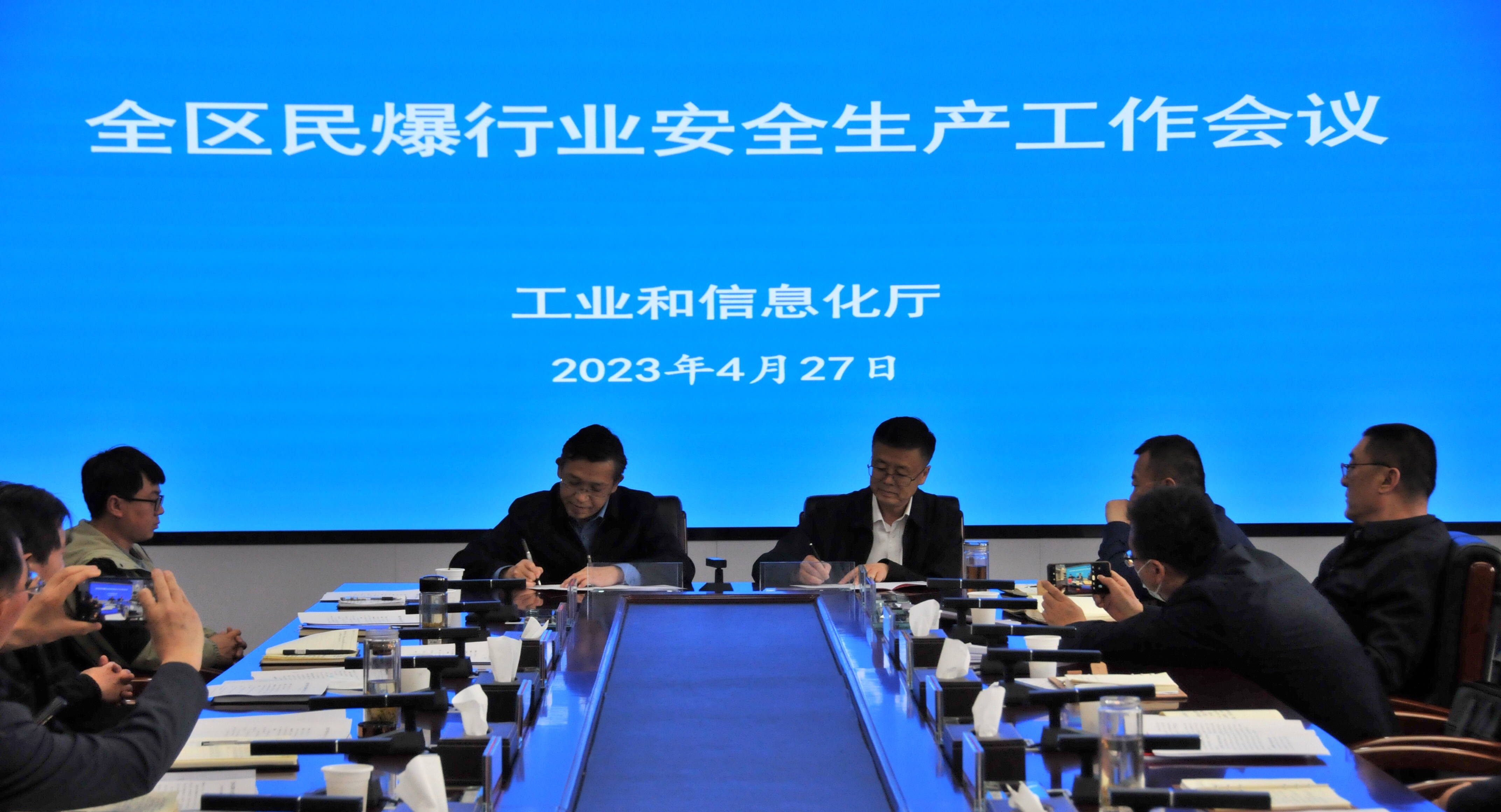 为深入学习贯彻黄色网址大全 总书记关于安全生产的重要论述和重要指示批示精神,落实黄色网址大全 、自治区安全生产工作会议精神和工信部安全生产工作要求,2023年4月27日,黄色网址大全 组织召开全区民爆行业安全生产工作会议,分析当前面临的形势,统一思想认识,部署下一步重点工作,与五市工信局签订了2023年度民爆行业安全管理目标责任书。自治区工信厅党组成员、副厅长刘红宁主持会议并讲话,五市工信局民爆行业分管领导和安全监管人员、民爆协会主要领导、民爆生产销售企业主要负责人及军民结合推进处相关人员参加会议。