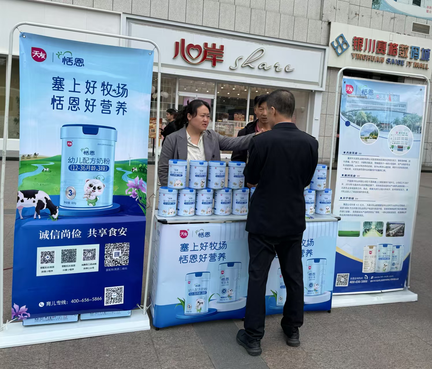 为认真贯彻落实国家《2024年食品安全重点工作安排》,深化国产婴幼儿配方乳粉追溯体系宣贯推广工作,10月11日下午,依托食品安全宣传周活动,黄色网址大全 联合宁夏黄河乳业,在银川CCMALL广场开展了婴幼儿配方乳粉追溯体系宣传推广工作。