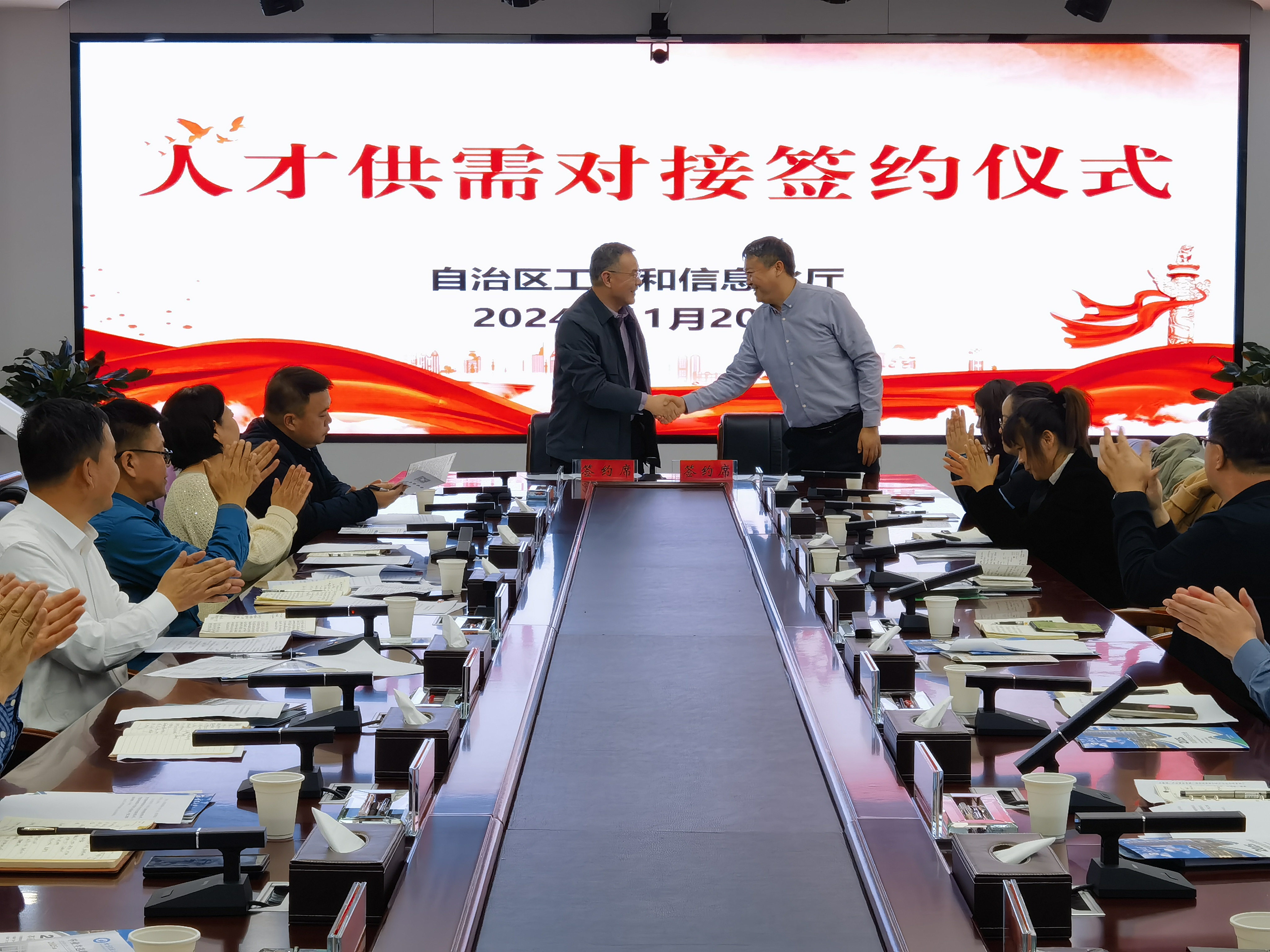 本次活动聚焦数字信息和新型材料等产业,活动前通过校企人才供需征集,对人才和企业具体分析、精准匹配、牵线搭桥。活动邀请区内相关院校和重点企业参加,向与会人员宣介了自治区人才培养引进、产教融合及就业政策,企业和院校分别详细介绍了用工需求和产业学生培养情况,双方围绕急需紧缺人才培养、引进、使用等开展座谈交流,精准对接人才供需情况。活动促成贝利特化学股份有限公司与宁夏大学,宁夏宁创新材料科技有限公司、中色(宁夏)东方集团有限公司与北方民族大学材料学院,宁夏锐芯科技有限公司与与宁夏工商职业学院签订了人才供需协议,为进一步深化校企合作育人用人搭建了协作平台,推动校企双方聚焦自治区重点产业发展需求,在人才培养、技术交流、科学研究等方面实现“双向奔赴”。